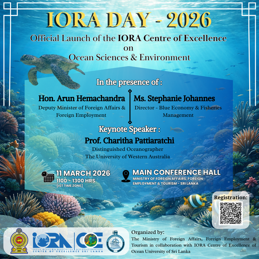 The Second Stakeholder Consultation Workshop of the IORA Centre of Excellence (IORA COE) was successfully conducted on 19 January 2026 at the Main Conference Hall of the Ministry of Foreign Affairs. The workshop saw active and meaningful engagement from key stakeholders representing the marine and maritime sectors. The discussions were highly constructive, and the valuable insights and recommendations shared by participants will play a crucial role in shaping and navigating the future scope and strategic direction of the IORA COE.
